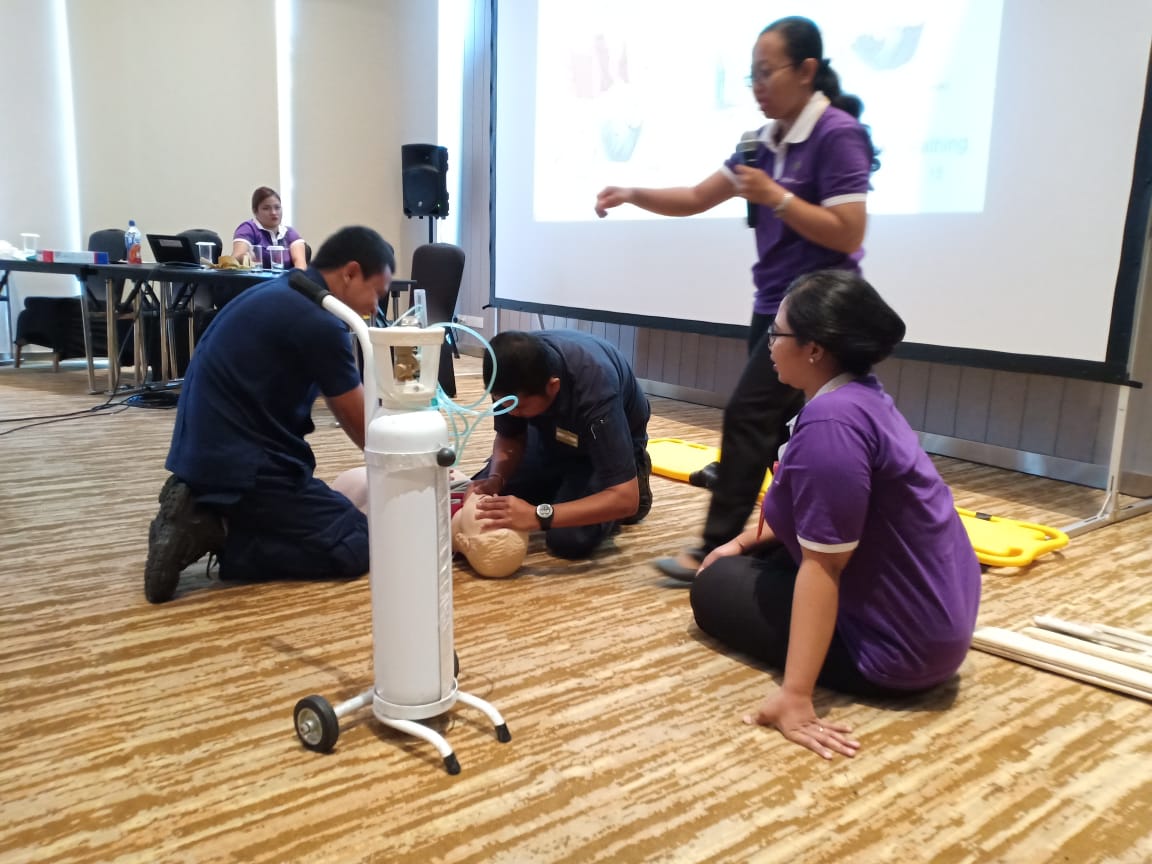 We provide training for our health workers about basic life support. This training covers the procedure for resusciting pulse and heart, the way to handling unconscious patient, handling of patients that have an increased animal bits, handling of patient who have an injury that cause by the fuel or fire.